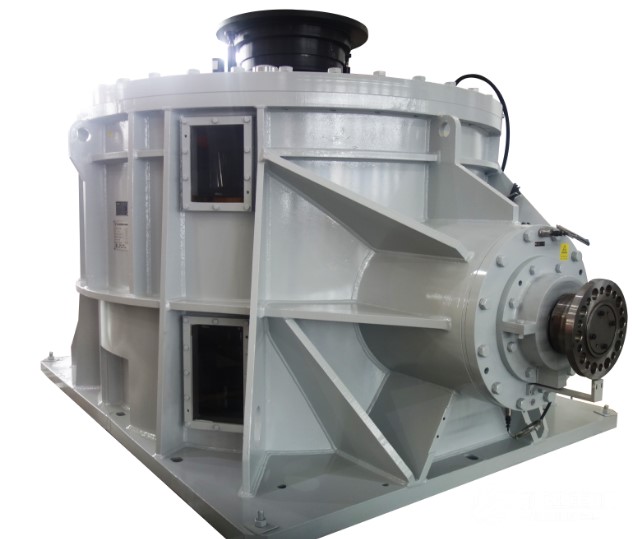 該項目用于獨立加載試驗。設(shè)計功率2×2200KW,齒輪箱采用立式輸入水平輸出的傳動結(jié)構(gòu),實現(xiàn)同軸反向的獨立加載試驗,內(nèi)外軸傳動系統(tǒng)為獨立結(jié)構(gòu),互不干擾,實現(xiàn)了多種復(fù)雜工況的加載試驗。